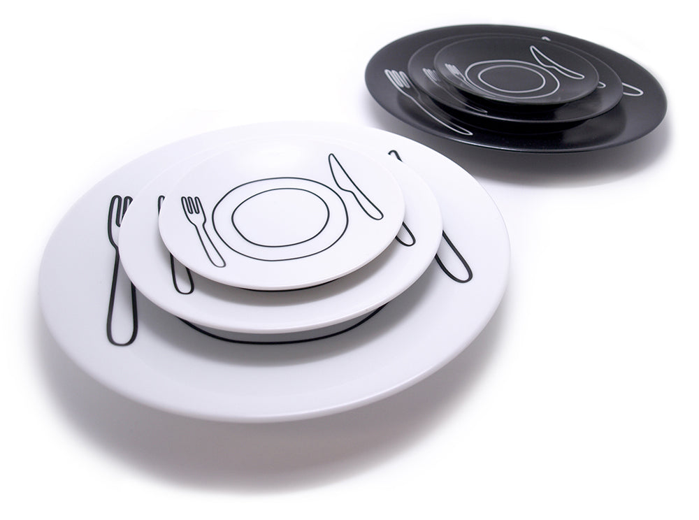 Range of plates illustrated with a playful image of a plate, knife and fork, framing and your food.