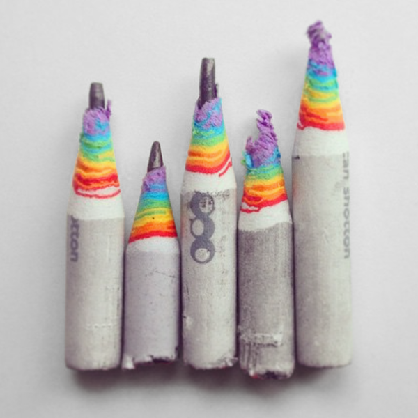You don’t need a special sharpener to make rainbows, but a sharp, good quality one will help you make better ones. To improve your rainbows, you can try sharpening from the other end of the pencil, using a better sharpener or applying a more constant force when turning the pencil. Trying to make the perfect rainbow is all part of the fun!