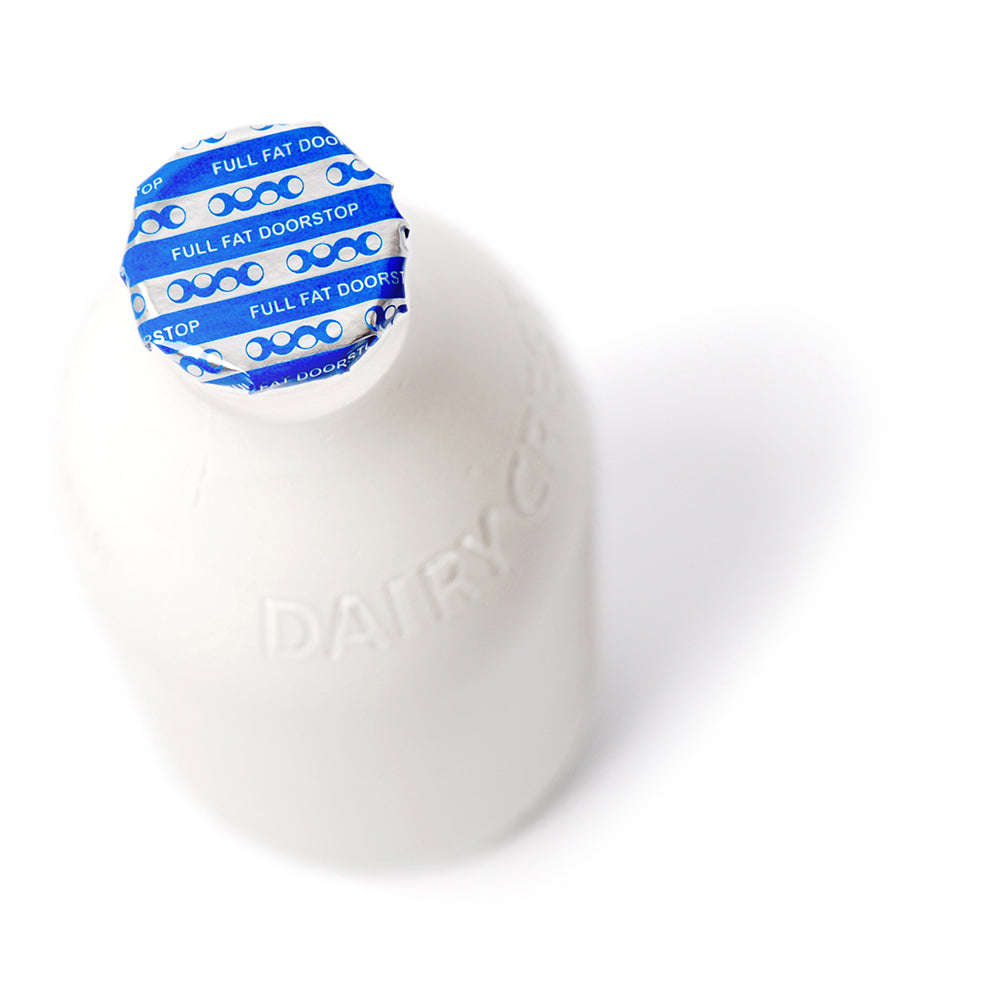 Where better to preserve the existence of the classic glass milk bottle design than by our doors as a functional doorstop?