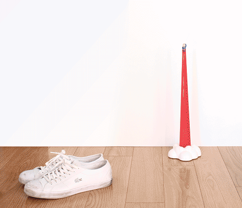 The cloud base holds the shoehorn in an upright, easy to reach position. So, as if frozen in time, shoeperhero appears to have burst out from a dust cloud, jetting into the air to rescue his next maiden in distress or perhaps he’s just late for work…